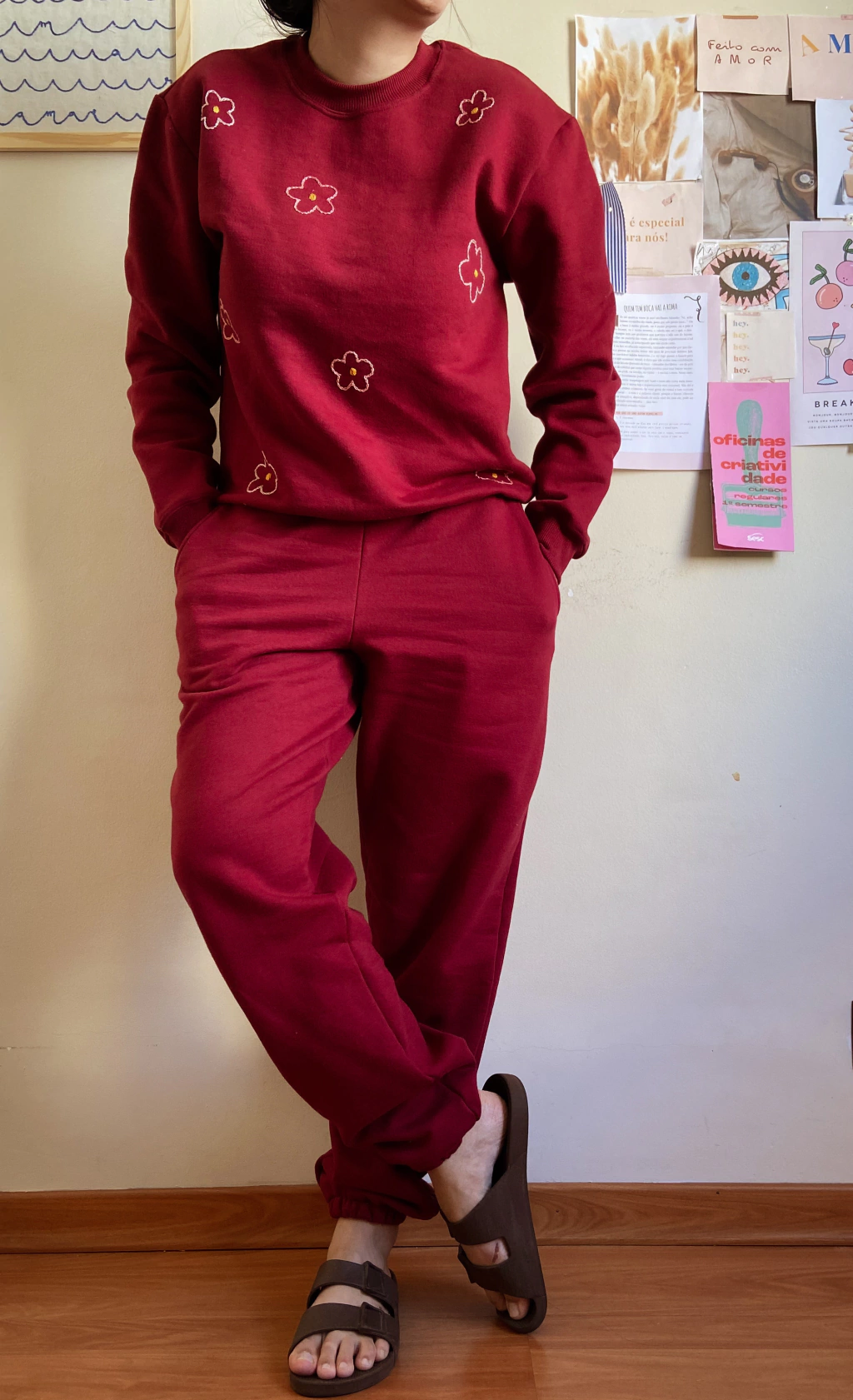Bordado: flores bordadas na parte da frente do moletom, com três tamanhos diferentes